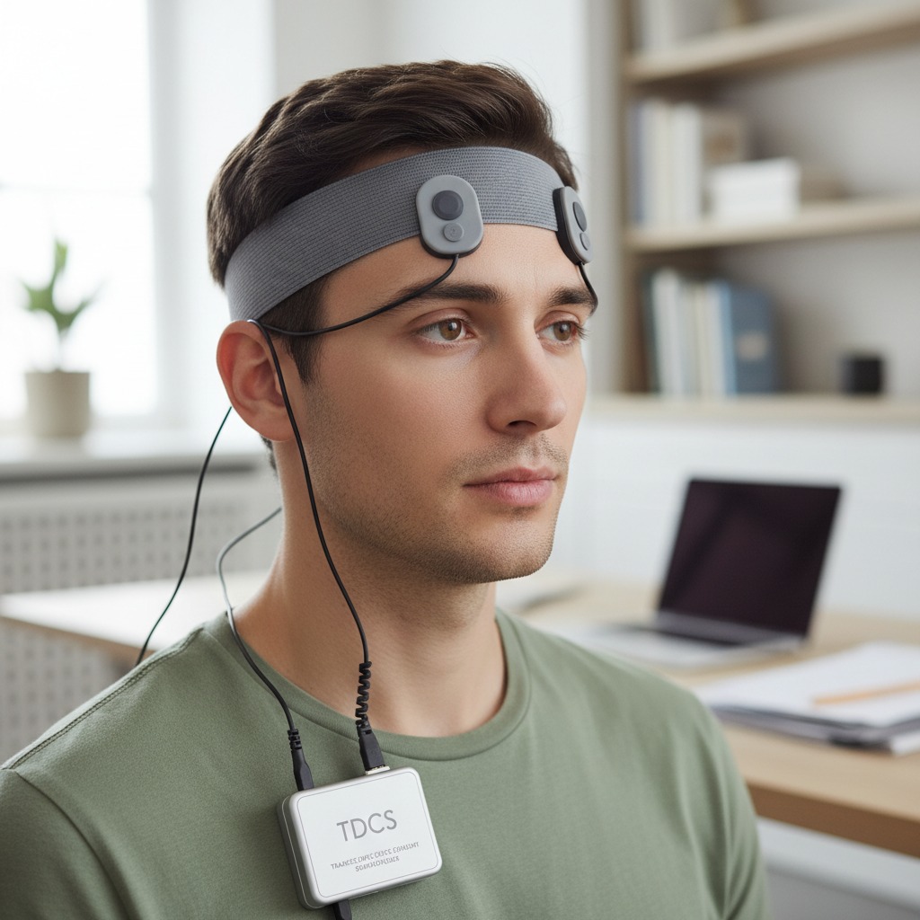 O tDCS (Estimulação Transcraniana por Corrente Contínua) é uma técnica não invasiva que aplica uma corrente elétrica fraca e contínua no couro cabeludo para modular a atividade dos neurônios. Ele atua regulando a excitabilidade cerebral, podendo aumentar ou reduzir a atividade em áreas específicas do cérebro.